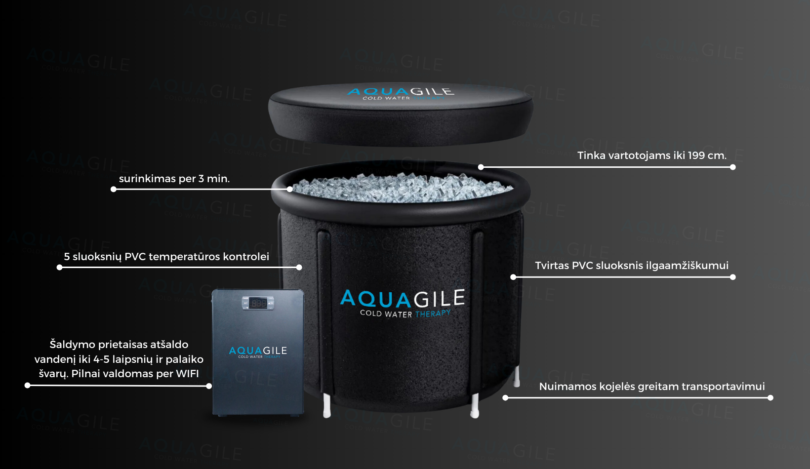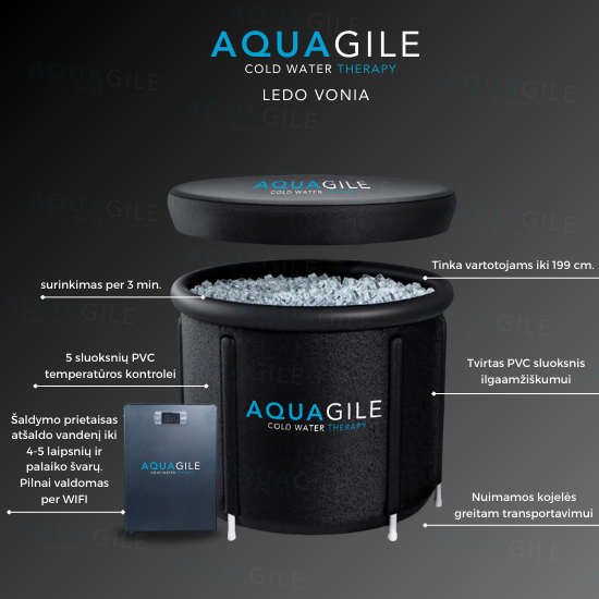 The AQUAGILE ice bath is designed for users up to 199 cm tall and is made of high-quality materials to maximize comfort.